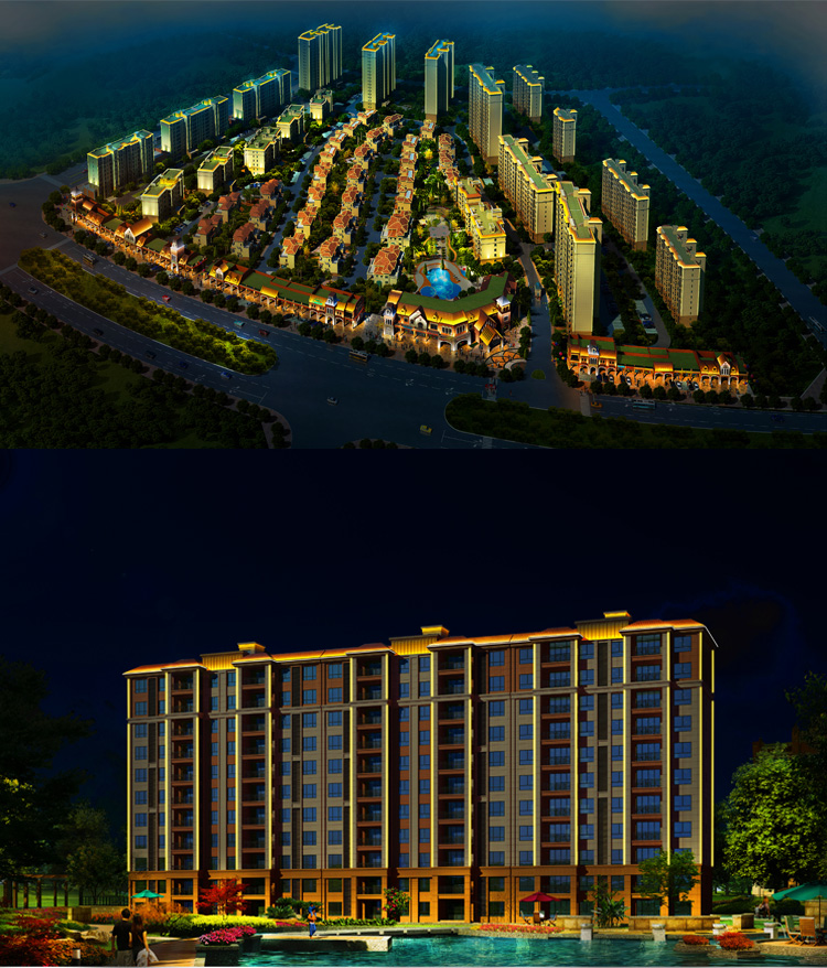 碧桂園小區(qū)建筑泛光照明,建筑輪廓照明和局部重點(diǎn)照明進(jìn)行建筑環(huán)境景觀的在塑造,設(shè)計(jì)中舍棄了景觀中繁瑣細(xì)節(jié)的表現(xiàn),將較直觀的景觀以大氣的燈光渲染出來(lái),營(yíng)造大氣的燈光氛圍,以節(jié)能而質(zhì)樸的燈光為市民營(yíng)造一個(gè)優(yōu)美高雅的夜間環(huán)境,為韓城夜色添了一道亮麗風(fēng)景。打造出綠色的主題思想。