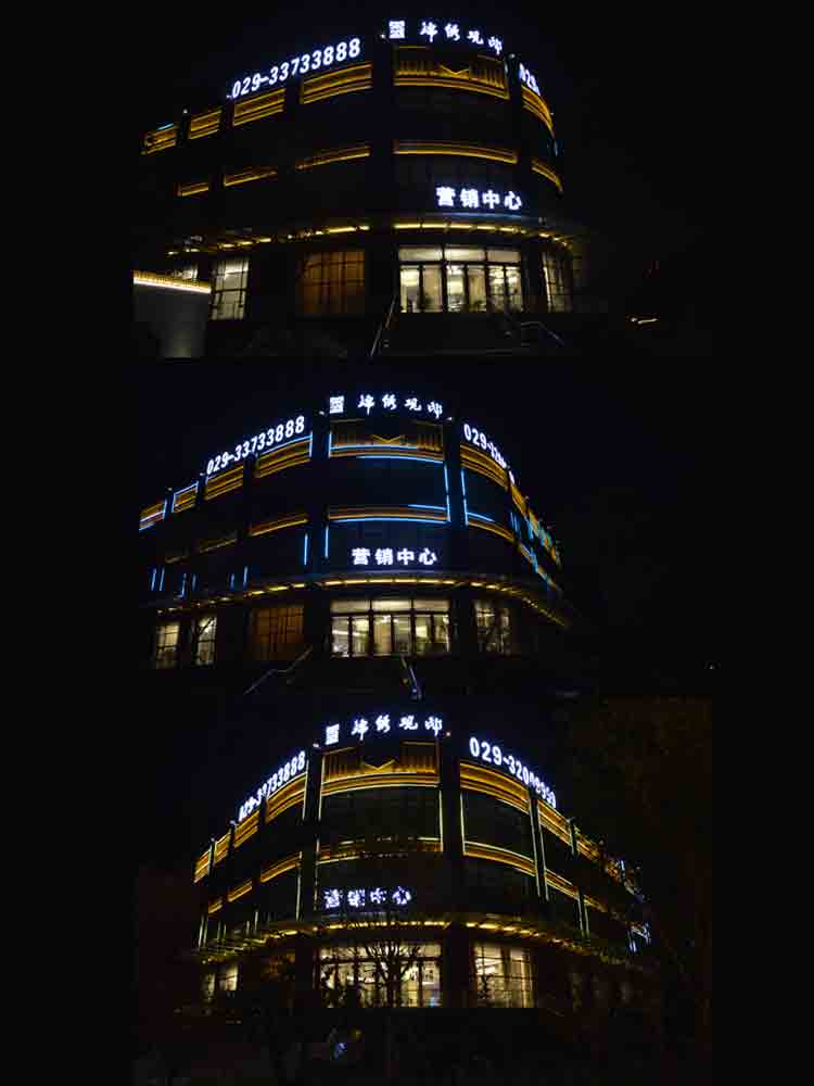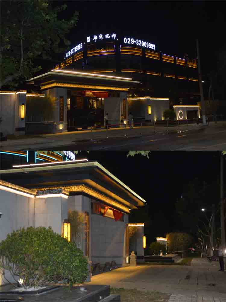 2018 榮盛景秀觀邸售樓部亮化,蘭光設(shè)計(jì)師根據(jù)其榮盛景秀觀邸售樓部商業(yè)屬性,商業(yè)照明設(shè)計(jì)明亮而醒目,營(yíng)造商業(yè)經(jīng)營(yíng)的夜景氛圍。以靜態(tài)的暖色燈光將其打亮,凸顯雅致?!皹s盛景秀觀邸”標(biāo)志以高亮度的燈光,吸引顧客注意,增強(qiáng)商業(yè)宣傳力度。景觀燈造型與建筑外立面造型完美融合,晚上光斑效果與綠植景觀交相輝映,相映成趣!榮盛景秀觀邸的亮化設(shè)計(jì)施工,獲得了客戶(hù)的高度認(rèn)可。