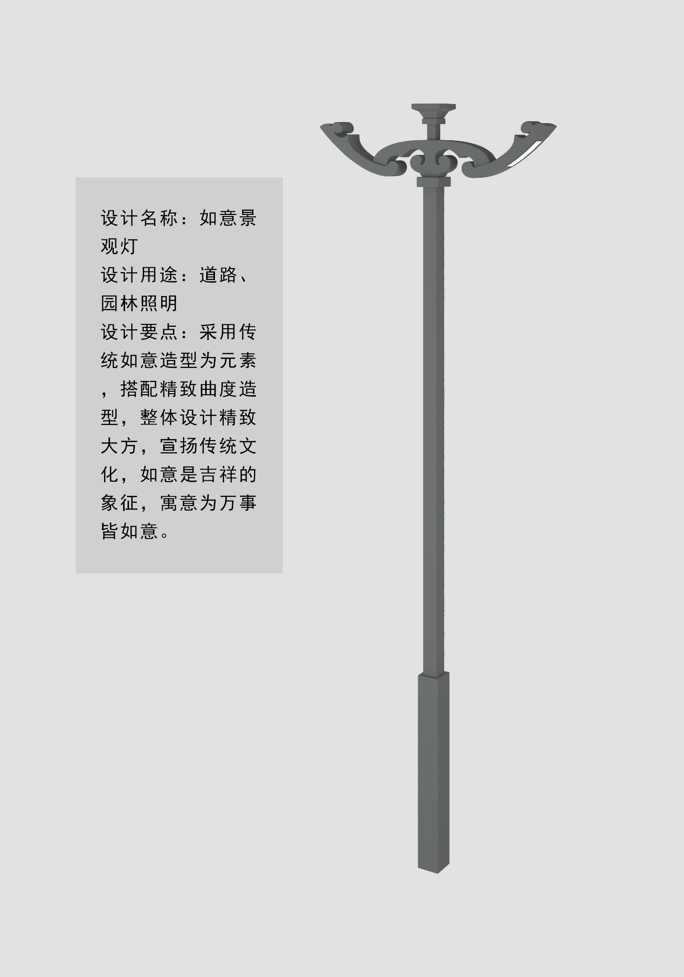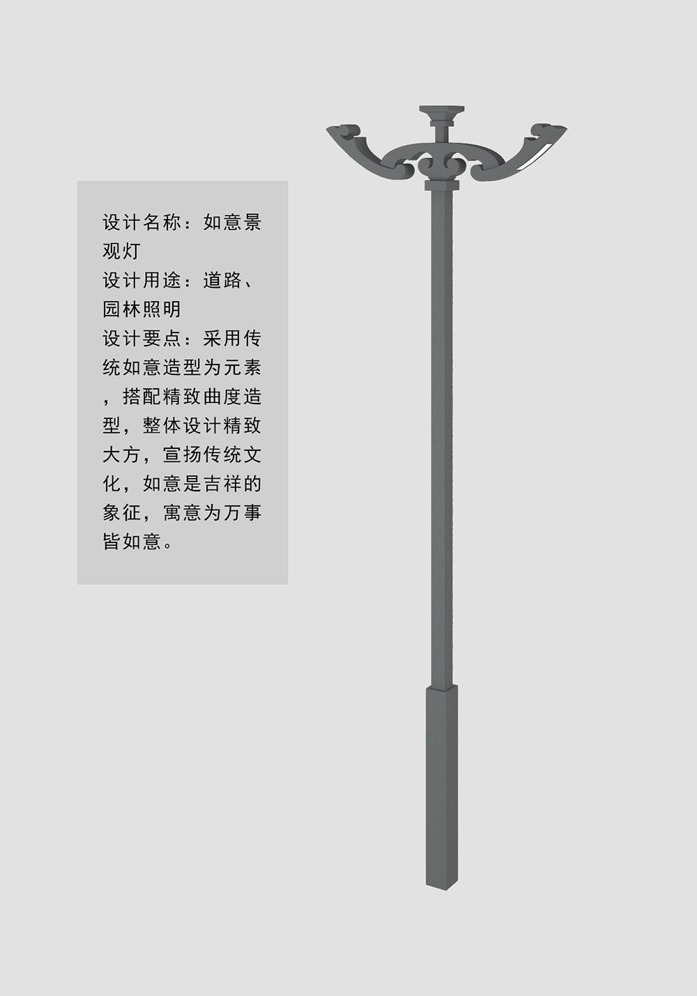 設(shè)計(jì)要點(diǎn):采用傳統(tǒng)如意造型為元素,搭配精致曲度造型,整體設(shè)計(jì)精致大方,宣揚(yáng)傳統(tǒng)文化,如意是吉祥的象征,寓意為萬(wàn)事皆如意。